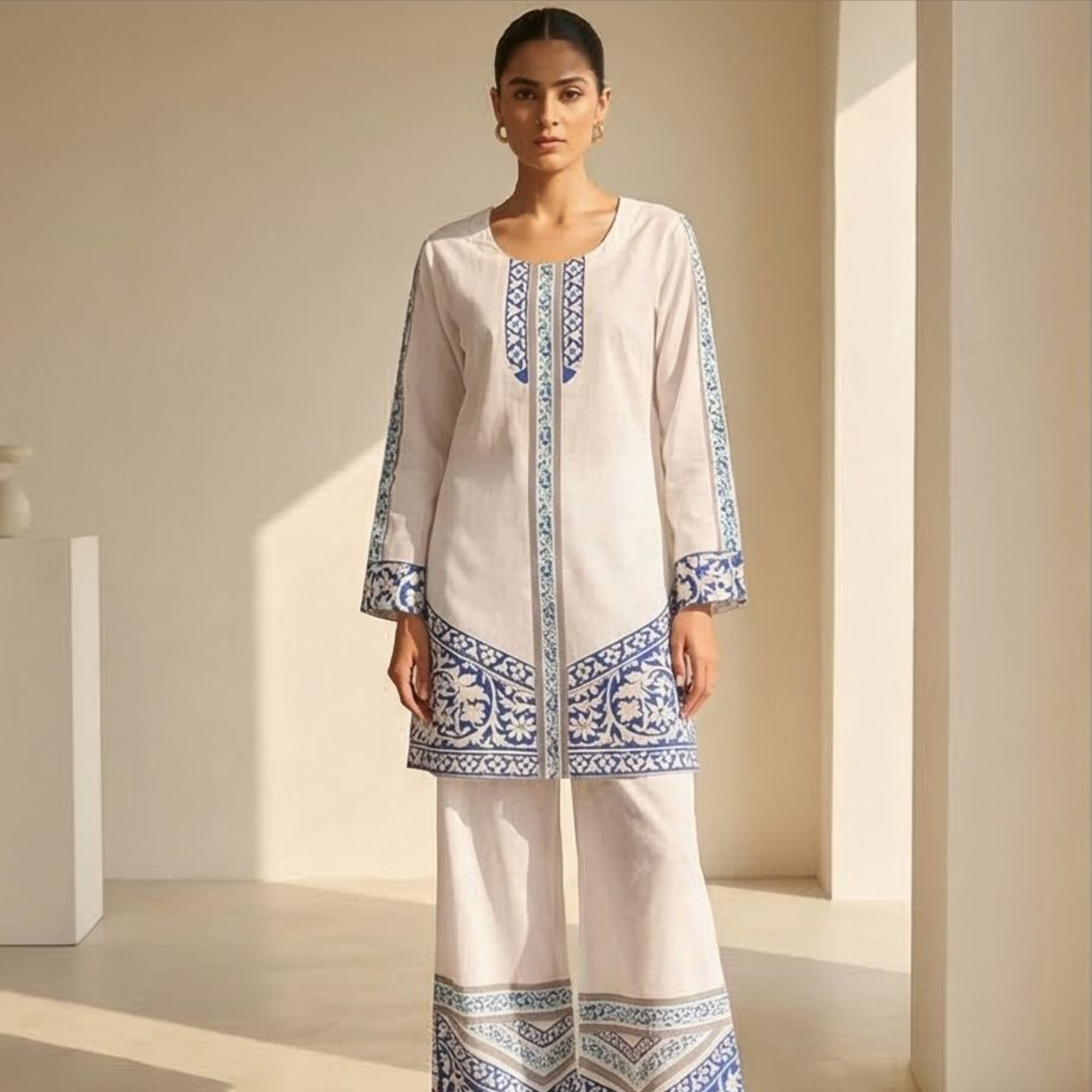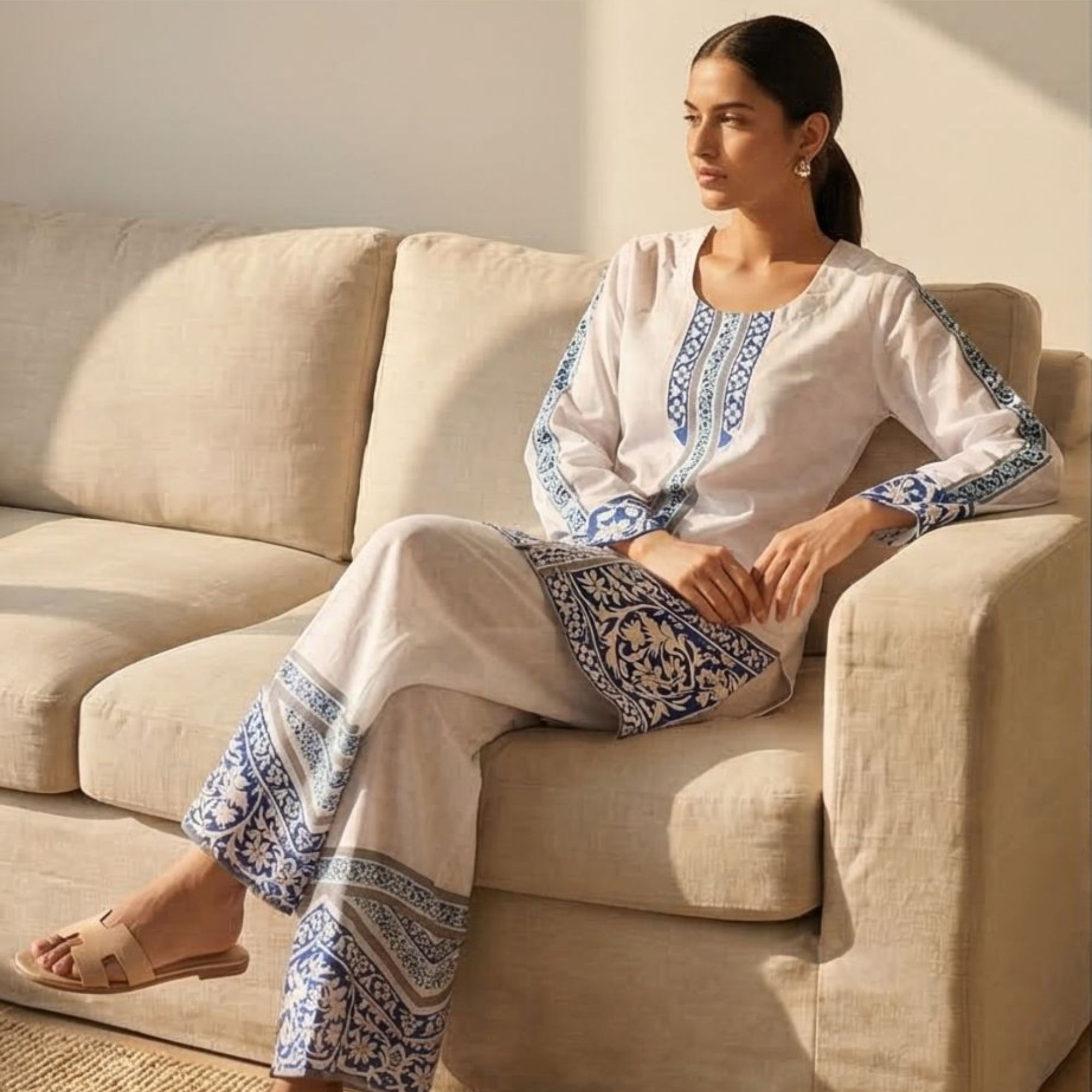 SET INCLUDES: Complete co-ord set with a printed kurti top and matching printed pant for a coordinated, put-together look.