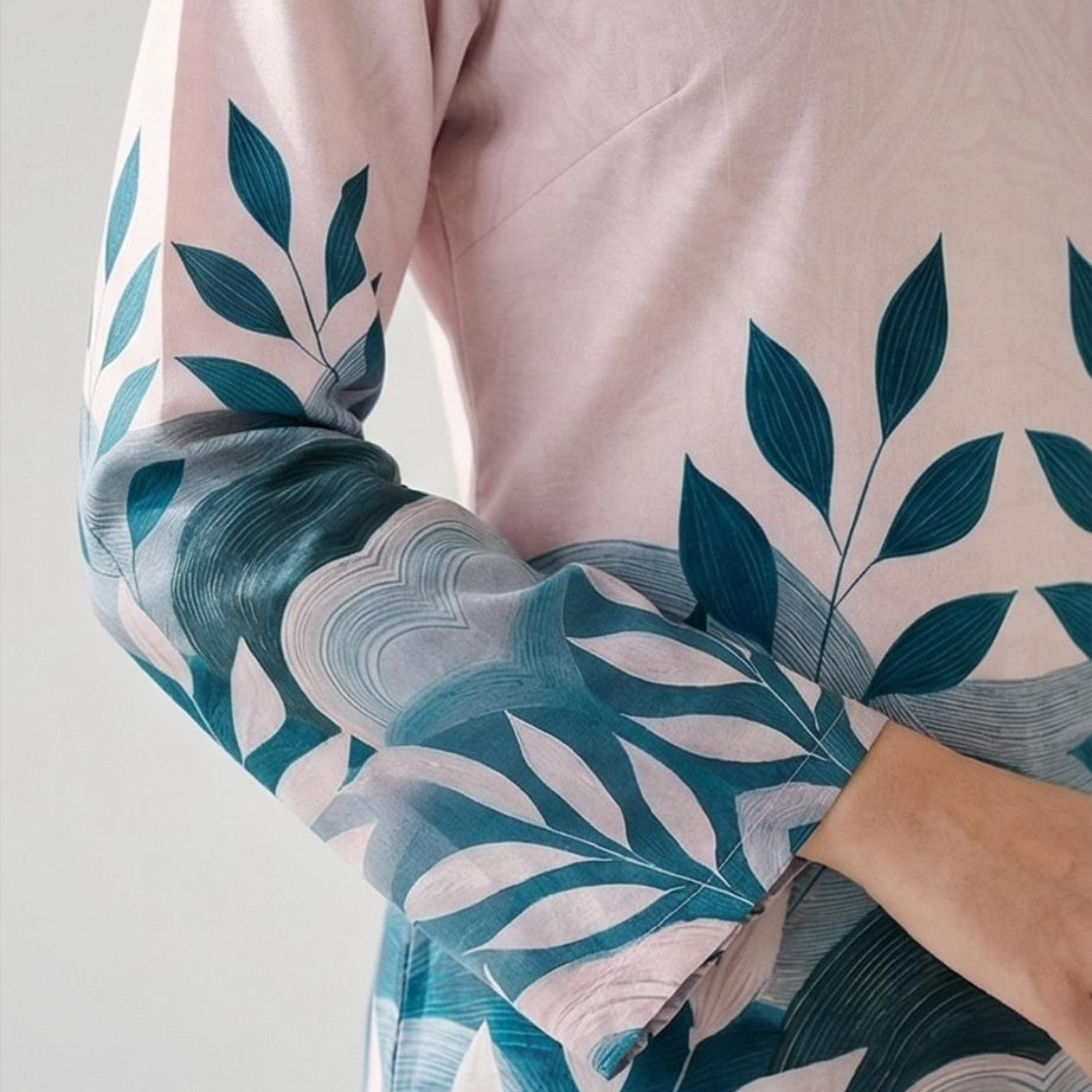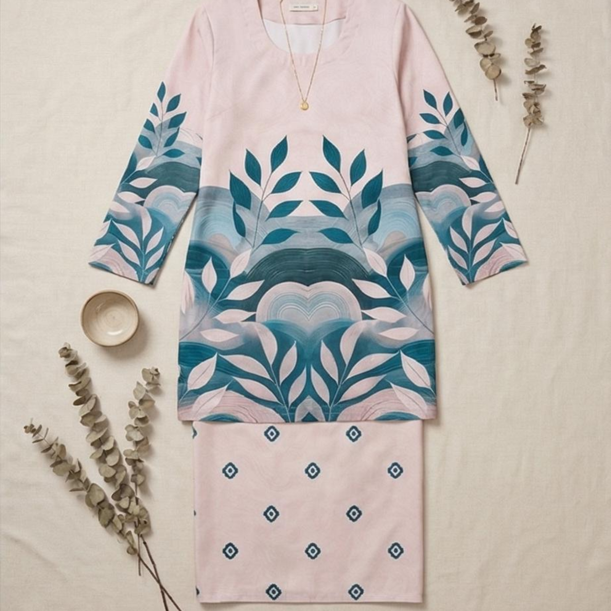 STYLISH DESIGN: Features a kurti style top with a beautiful teal botanical leaf print and matching printed pants for a coordinated look.