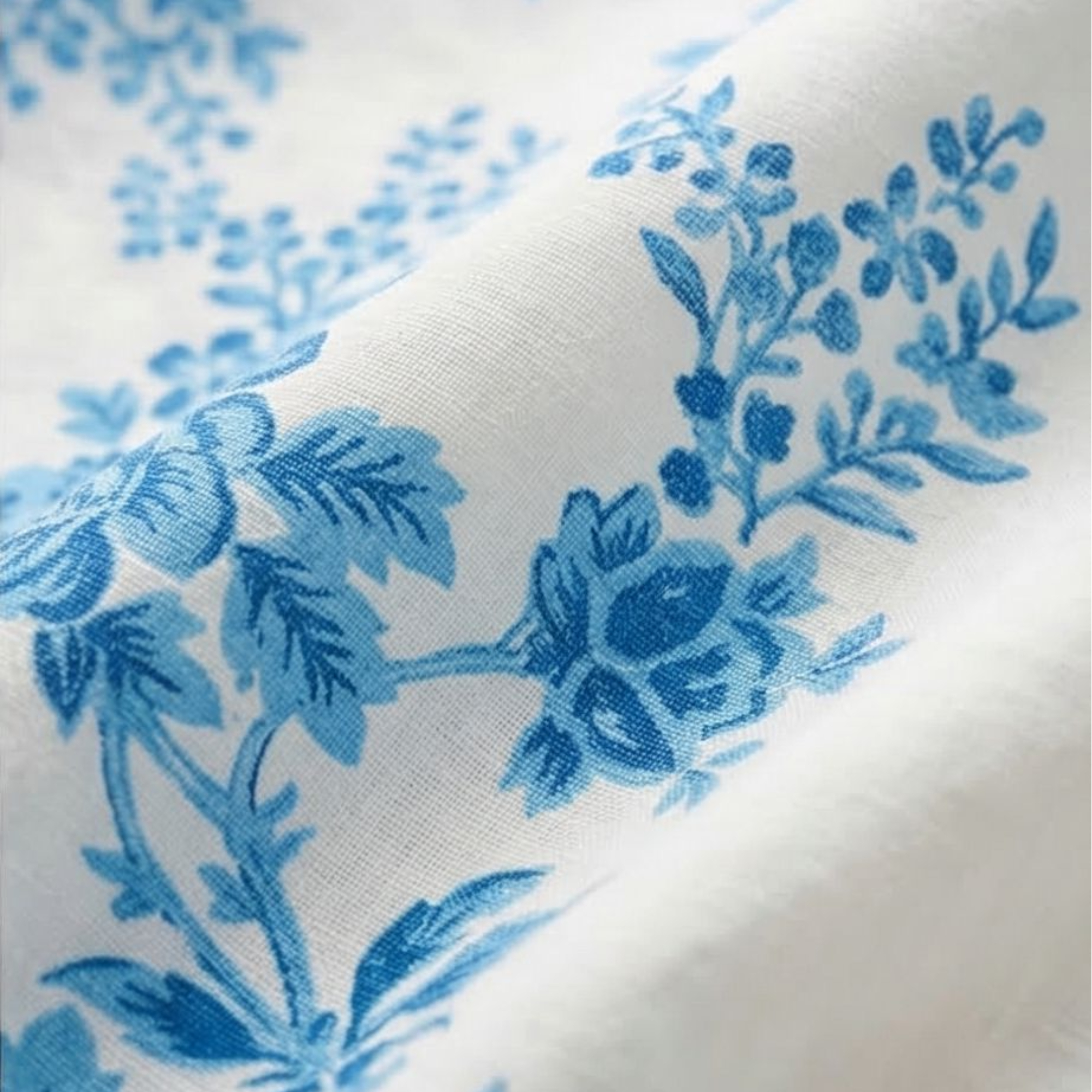 COMFORTABLE PANTS: The matching pants feature an all-over blue floral print with an elasticated waistband for a relaxed and comfortable fit throughout the day.