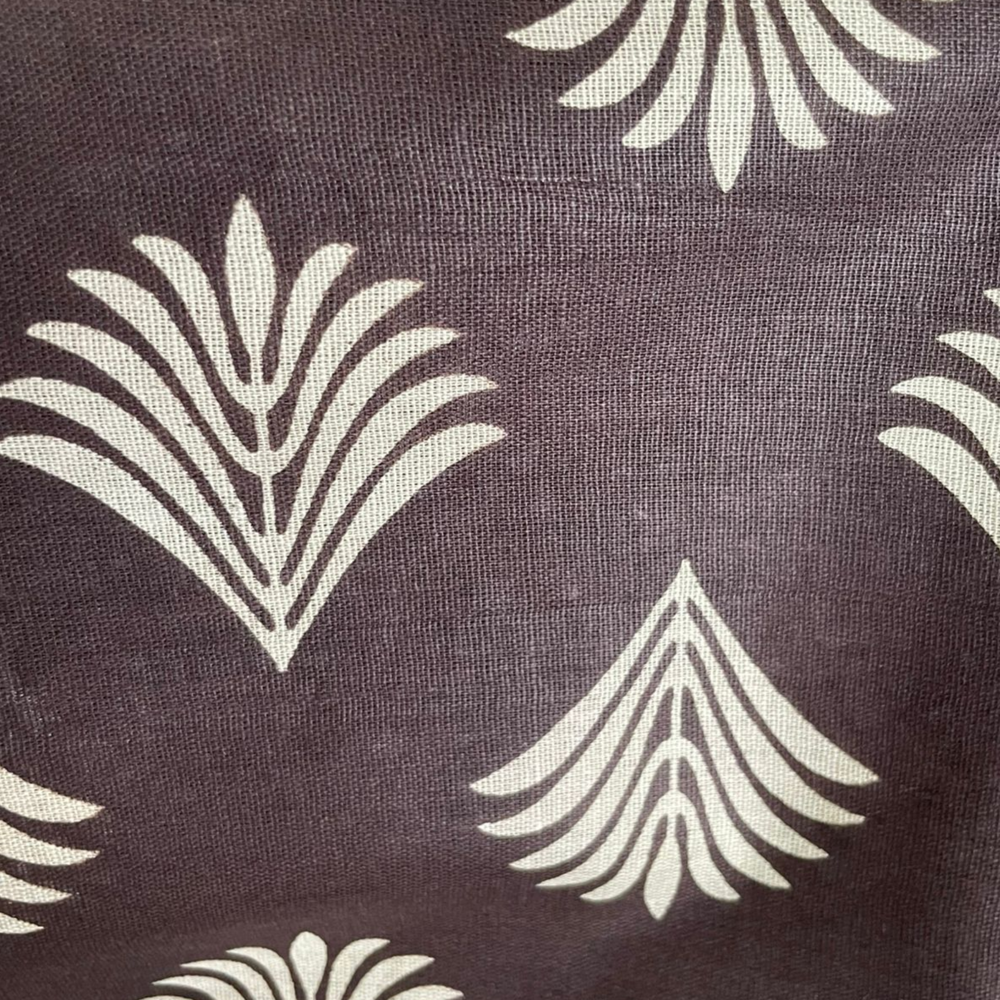 DESIGN: Features an elegant combination of a dark brown floral fan-print top fabric and a complementary beige wave-patterned bottom fabric.