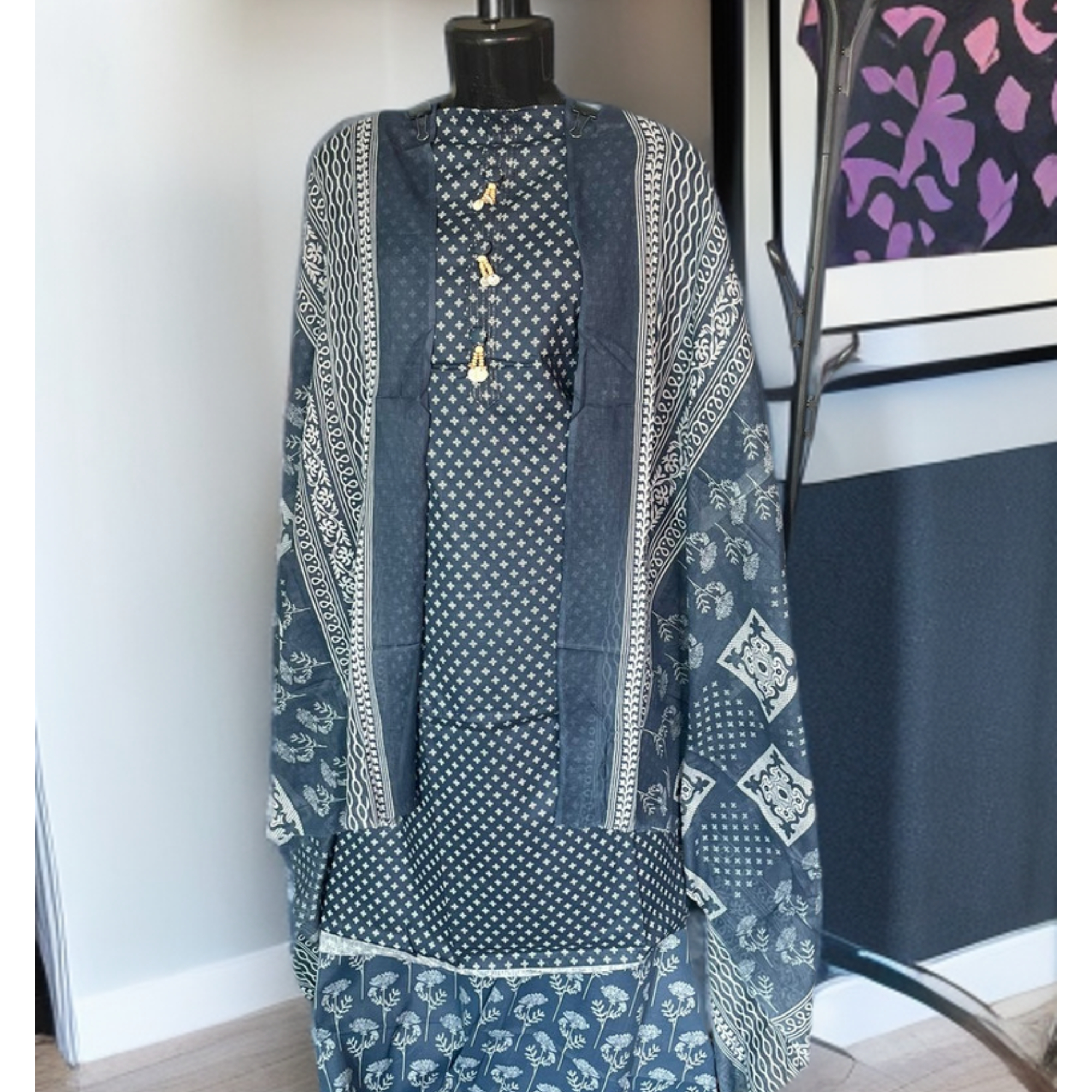COMPLETE SET: Includes unstitched top, bottom, and dupatta fabric pieces, allowing you to customise the fit and style as per your preference.