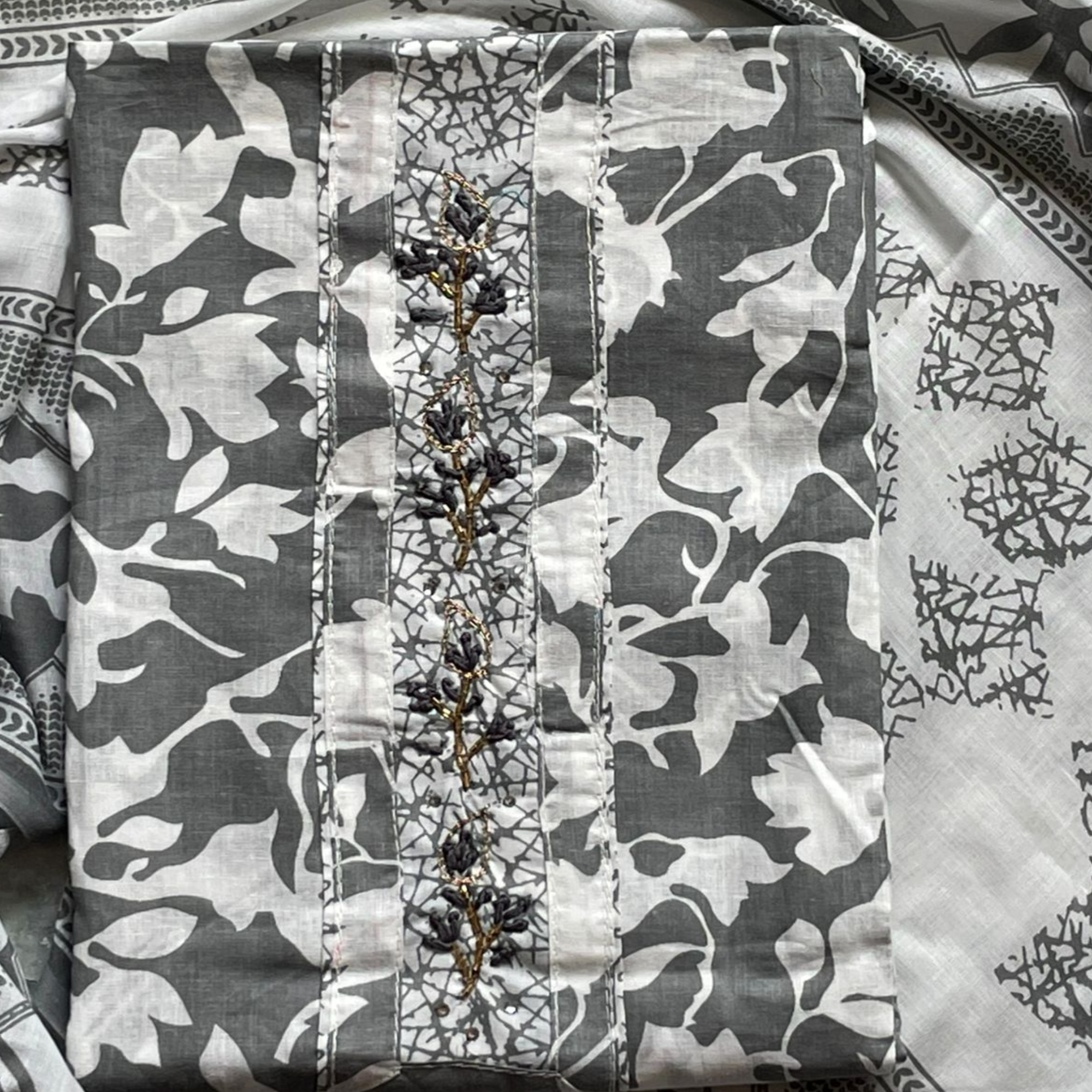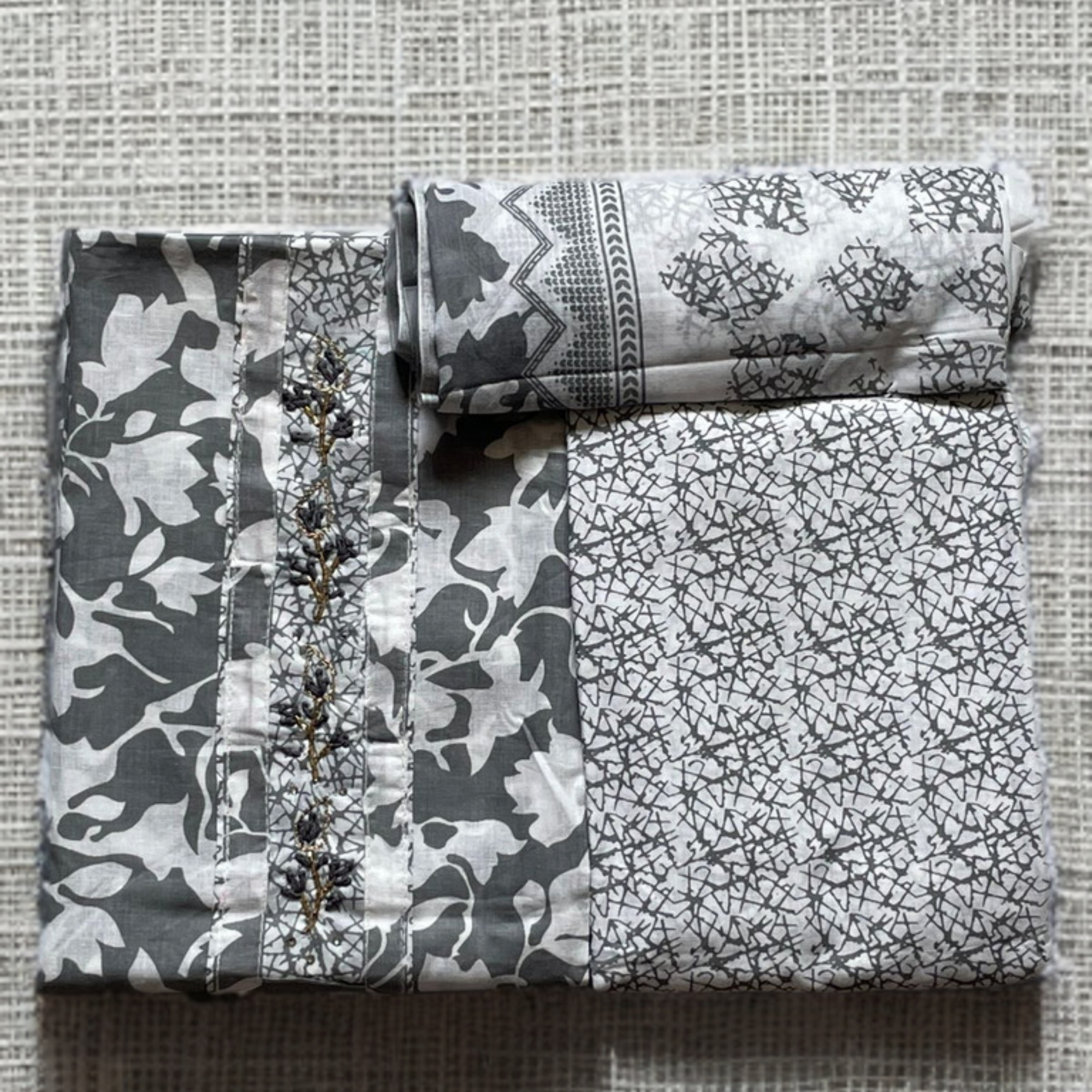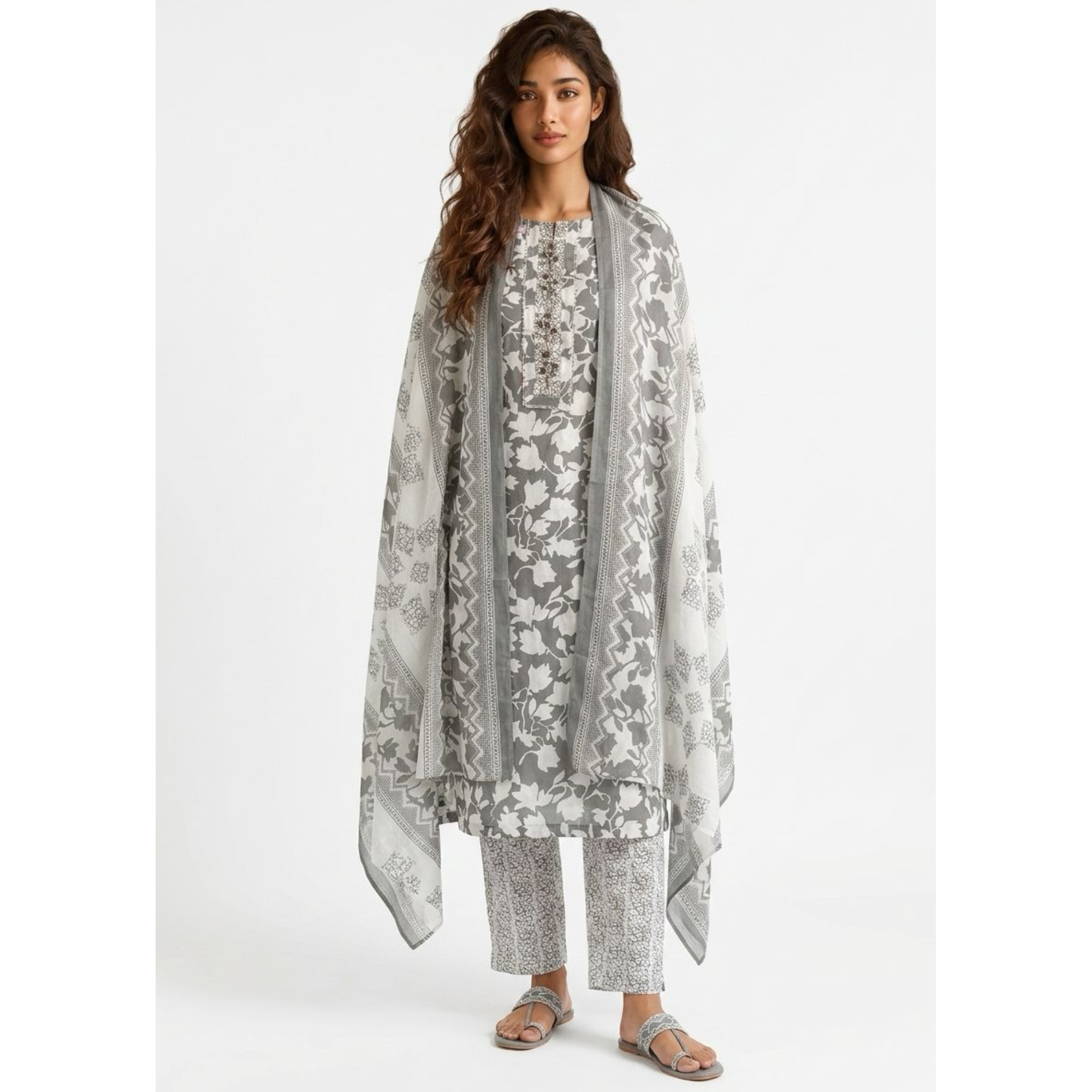 auto draftRNVIVA Women’s Grey Floral Printed Kurta Pant Set with Dupatta