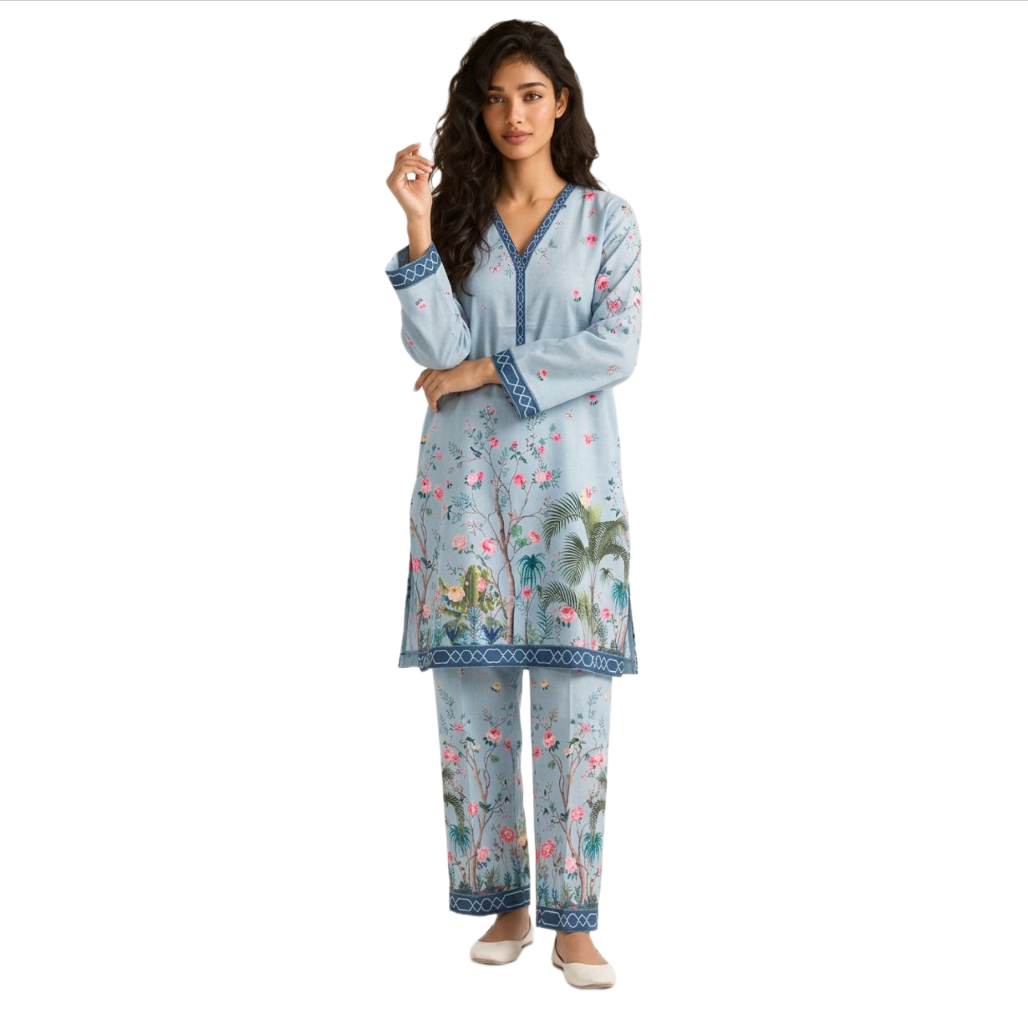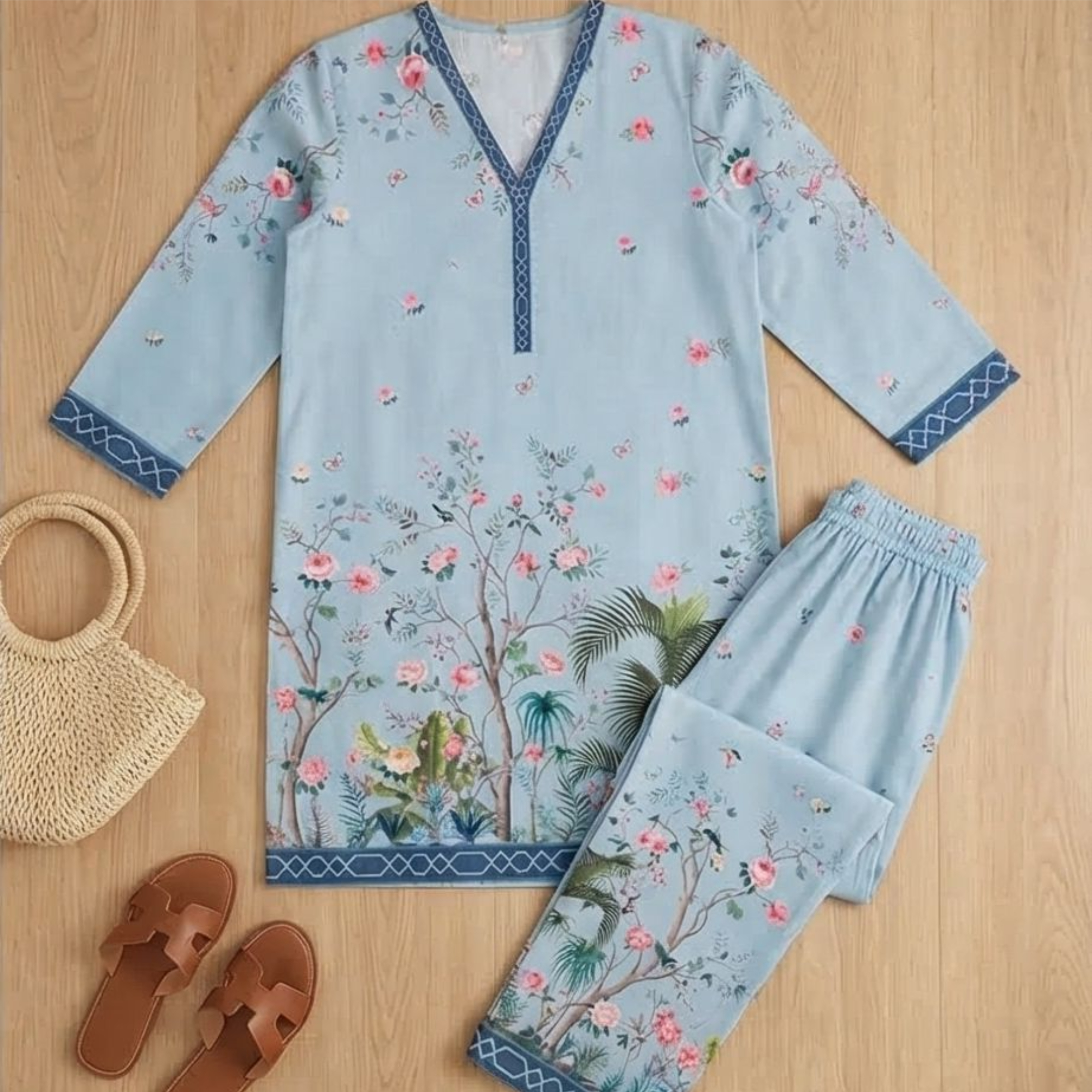 Be the first to review “Women’s Floral Printed Kurta Pant Set | Stylish Rayon Blend Straight Kurti with Matching Pants | Casual, Office & Daily Wear Ethnic Co-Ord Set Sky Blue”