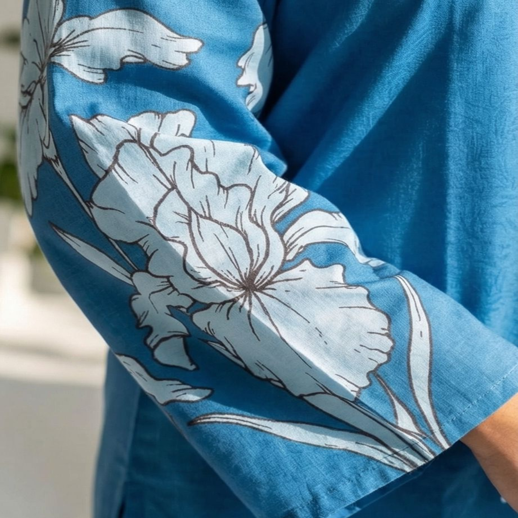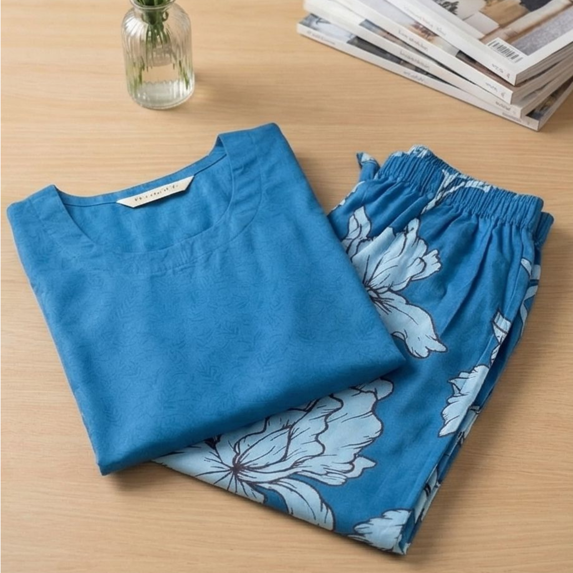 Upgrade your everyday wardrobe with this elegant RNVIVA Women’s Blue Floral Printed Co-Ord Set, designed to combine comfort with modern style. This stylish two-piece set features a solid blue long kurta with beautifully printed bell sleeves paired with matching floral printed wide-leg pants, creating a balanced and fashionable look. The soft and breathable fabric ensures all-day comfort, making it perfect for casual outings, daily wear, travel, or relaxed gatherings. The minimal yet trendy design makes this co-ord set a versatile addition to your wardrobe. Pair it with flats or heels and simple accessories for a chic and effortless look. Its relaxed fit and elegant floral detailing provide both style and comfort, making it suitable for every season.